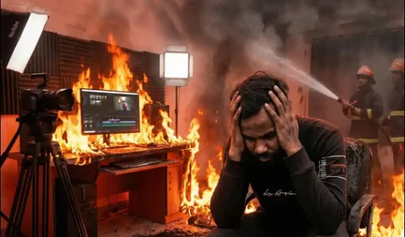یوٹیوبر نے لاکھوں روپے مالیت کا اسٹوڈیو جلا دیا، خودسوزی کی کوشش